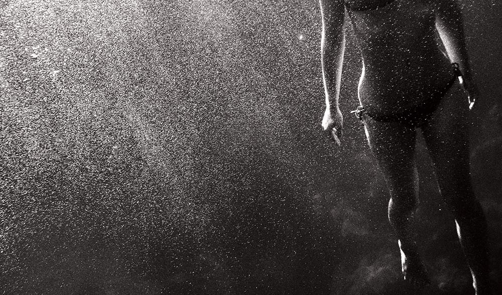 a colour palette of deep teal and misty sprays of aqua. An intricate
